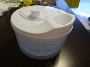 野菜水切り器を使って、収穫したバジルを洗う