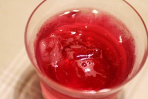 赤しそジュースが冷えているとゼラチンを入れた瞬間に固まります。