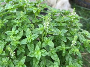 バジルの花を咲かせ、種を待つ秋