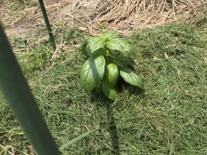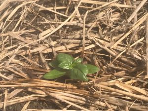 バジルの定植には、敷き藁や雑草マルチ保湿